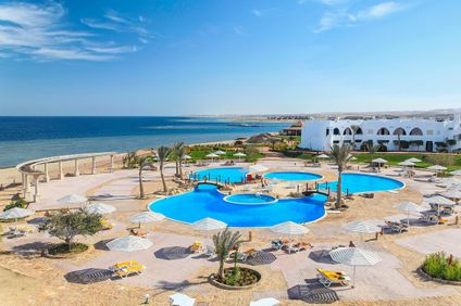 Direkt am rund 1,3 km langen privaten Strand mit 400 m langem Sandabschnitt, in der wunderschönen El Nabaa El Soghayar Bucht gelegen, mit eigenem vorgelagertem Hausriff und Pier zum Schnorcheln. Ein Steg, der auch als Bootsanlegestelle dient, führt ins tiefere Gewässer. Zum Flughafen von Marsa Alam sind es etwa 35 km.