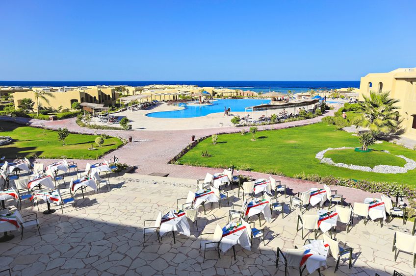 Direkt am etwa 1 km langen, hoteleigenen Sandstrand mit vorgelagertem Hausriff und Steg, der ins Meer führt. Der Hafen von Port Ghalib mit Einkaufs- und Unterhaltungsmöglichkeiten sowie Restaurants und Cafés ist rund 3,5 km entfernt. Nach Marsa Alam sind es ca. 65 km. Der Flughafen von Marsa Alam ist knapp 10 km entfernt.