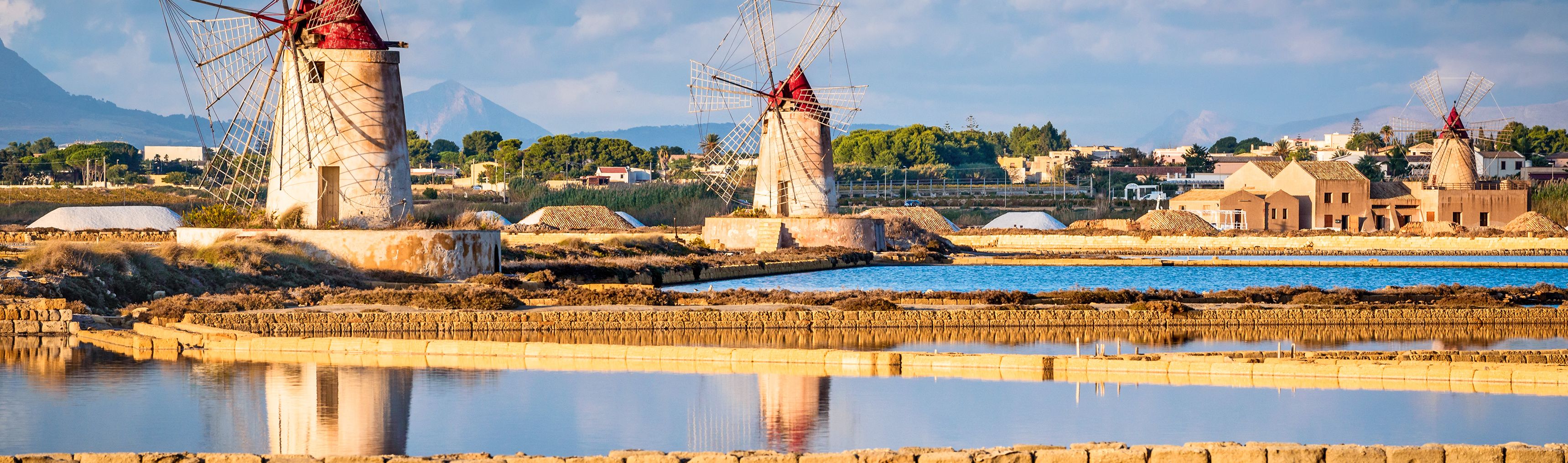 Schon in der Antike war Marsala aufgrund ihrer guten Lage ein wichtiger Hafen und eine gut gesicherte Festung. Später wurde Marsala zur ersten Stadt Siziliens, die unter islamische Herrschaft viel. Unter der Herrschaft der Araber wurde sie neu aufgebaut und stieg zum wichtigsten Zentrum der Region auf. Ein Status, den sie erst viel später an Trapani abtreten musste. Heute bietet die Stadt zahlreiche schöne Gebäude wie den Palazzo VII Aprile aus dem 16. Jahrhundert, den mächtigen Dom San Tommaso di Canterbury und die prachtvoll gestaltete Villa Cavallotti. Im Museo Archeologico Baglio Anselmi können Sie verschieden Objekte und Mosaike aus der Antike bestaunen, während im Museo degli Arazzi einige grosse Wandteppiche ausgestellt werden. Im 19. Jahrhundert blühte in Marsala der Weinanbau auf. Der köstliche Likörwein von Marsala geniesst international ein hohes Ansehen und ist einer der wichtigsten Wirtschaftsfaktoren der Region. Eine besondere Bedeutung wird auch dem Salzabbau zuteil, der hier seit Jahrhunderten betrieben wird. Noch heute sind die Salinen in Betrieb und die historischen Windmühlen gehören zu den Wahrzeichen der Stadt. In den Restaurants der Innenstadt können Sie die regionalen Erzeugnisse kosten und sich von der traditionellen Küche Marsalas begeistern lassen. In der Umgebung der Stadt erwartet Sie zudem eine idyllische, ländliche Landschaft.