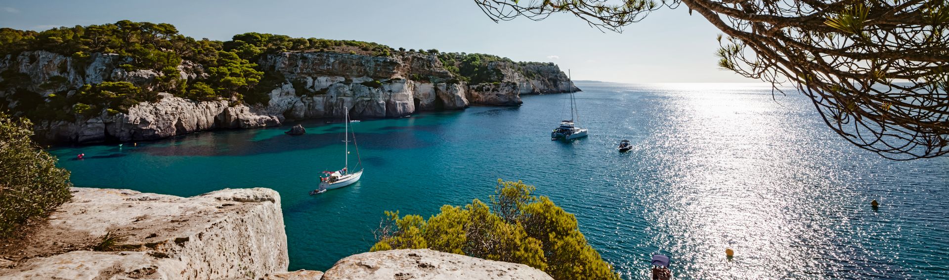 Hügel und Meer, schroffe Landschaft und weiche Küstenlinien – das ist Menorca. Strände wie die Cala Macarella, Cala Mitjana oder Cala Turqueta zwischen Felsen und Pinienwäldern sind Flecken der Ruhe und Entspannung. Die Wege zu diesen Buchten führen über schmale Pfade oder eröffnen sich nur vom Wasser aus.