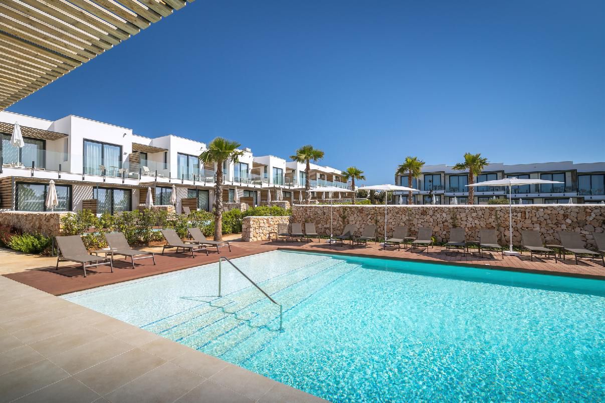 Das Hotel liegt an einer bevorzugten Stelle der Südküste Menorcas und bietet atemberaubende Aussichten auf malerische Buchten, das azurblaue Meer und unvergessliche Sonnenuntergänge. Der berühmte Sandstrand Punta Prima im gleichnamigen Ferienort ist etwa 1,5 km entfernt. Hier finden Sie auch eine Auswahl an Restaurants, Bars und Geschäften. Die sehenswerte Hauptstadt der Insel Mahon liegt nur knapp 12 km entfernt. Ein besonderes Highlight in der Nähe ist die historische Festung La Mola - ein echter Geheimtipp für Kulturliebhaber. Zum Schluss sei noch erwähnt: Der Flughafen befindet sich ungefähr 15 km entfernt.