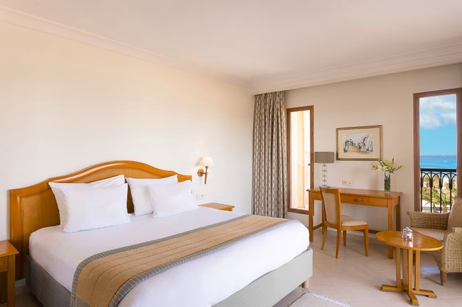 Die modernen Doppelzimmer Classic (ca. 30–34 m2) sind geräumig und verfügen über Bad, WC, Föhn; Safe, Telefon, TV, WLAN (gratis), Minibar (gegen Gebühr), Tee-/Wasserkocher Klimaanlage; Balkon mit Stadtsicht. Auch zur Meerseite und mit Pool-/Meersicht buchbar. Die Suiten (ca. 65 m2) sind gleich ausgestattet wie die Doppelzimmer, bieten aber mehr Platz und zusätzlich eine Dusche und einen gemütlichen Wohnbereich, Tee-/Kaffeekocher, Kaffeemaschine. Alle Suiten haben einen grossen Balkon oder eine grosse Terrasse mit Meersicht und sind buchbar für maximal 2 Erwachsene.