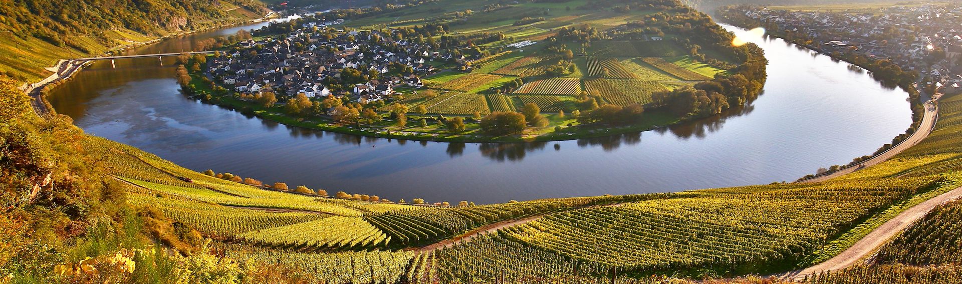 Im Westen Deutschlands liegt im Bundesland Rheinland-Pfalz die Moselregion. Die Mosel schlängelt sich entlang der kleinen Dörfer durch das Bundesland. Entsprungen in Frankreich, fliesst der Fluss über Luxemburg und von Trier bis hin nach Koblenz, wo die Mosel in den Rhein mündet. Parallel verläuft die bergige Landschaft mit vielen Weinbergen, welche die Region prägen. Erleben Sie auf Ihrer Reise die Moselregion mit ihrer traumhaften Natur und dem ruhigen Wasser.