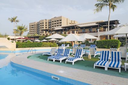 Das Hotel liegt direkt am weitläufigen Sandstrand mit Blick auf das beeindruckende Hajar-Gebirge und befindet sich im Diplomatenviertel von Muscat, Al Qurum. In unmittelbarer Nähe gibt es Einkaufsmöglichkeiten und Restaurants sowie das Opernhaus in rund 500 m Entfernung. Der bekannte Muttrah Souk ist etwa 12 km entfernt. Ein besonderer Geheimtipp für Besucher ist der Besuch des Royal Opera House Gardens. Der Flughafen ist ca. 25 km entfernt.