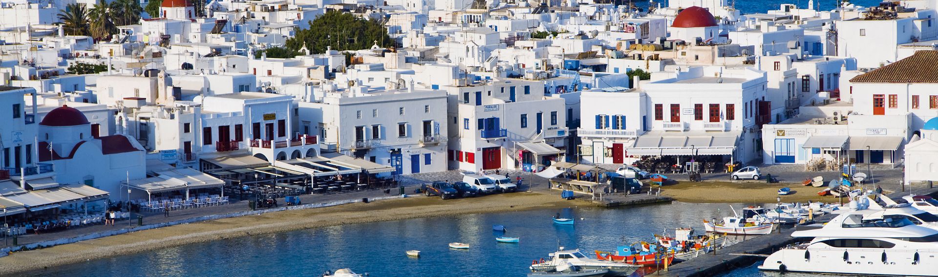 Die Hafenpromenade von Mykonos, unzählige Hafencafés, traumhafte Luxusjachten, bunte Fischerboote und der Pelikan «Petros II» laden zu einem Spaziergang ein (der Pelikan ist das Maskottchen der Insel). Das Gebiet von «Mikri Venetia» erinnert, wie der Name vermuten lässt, an Venedig: Die Häuser stehen auf Pfählen im Wasser, und es gibt nichts Traumhafteres, als hier in einer Bar den Sonnenuntergang zu geniessen. Gute Busverbindungen zu den bekannten Stränden der Insel.