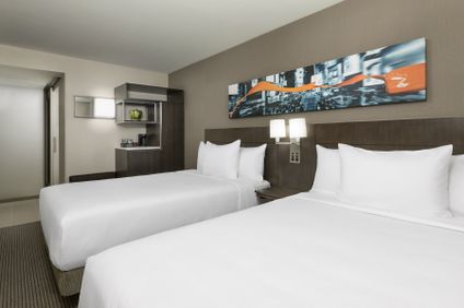 Das Viersternehotel befindet sich nur etwa 800 m vom weltberühmten Times Square entfernt. Rund ums Hotel bieten sich diverse Einkaufsmöglichkeiten, Restaurants und Bars. Ob im Hell’s-Kitchen-Viertel oder Midtown Manhattan, für jeden Geschmack lässt sich etwas finden. Den Theater District mit seinem fantastischen Broadway liegt in knapp 1,2 km Distanz. Das Empire State Building können Sie ohne Probleme zu Fuss nach ungefähr 1,3 km erreichen. Eine U-Bahnstation befindet sich etwa 110 m entfernt. Bis zum Flughafen JFK trennen Sie ca. 25 km.
