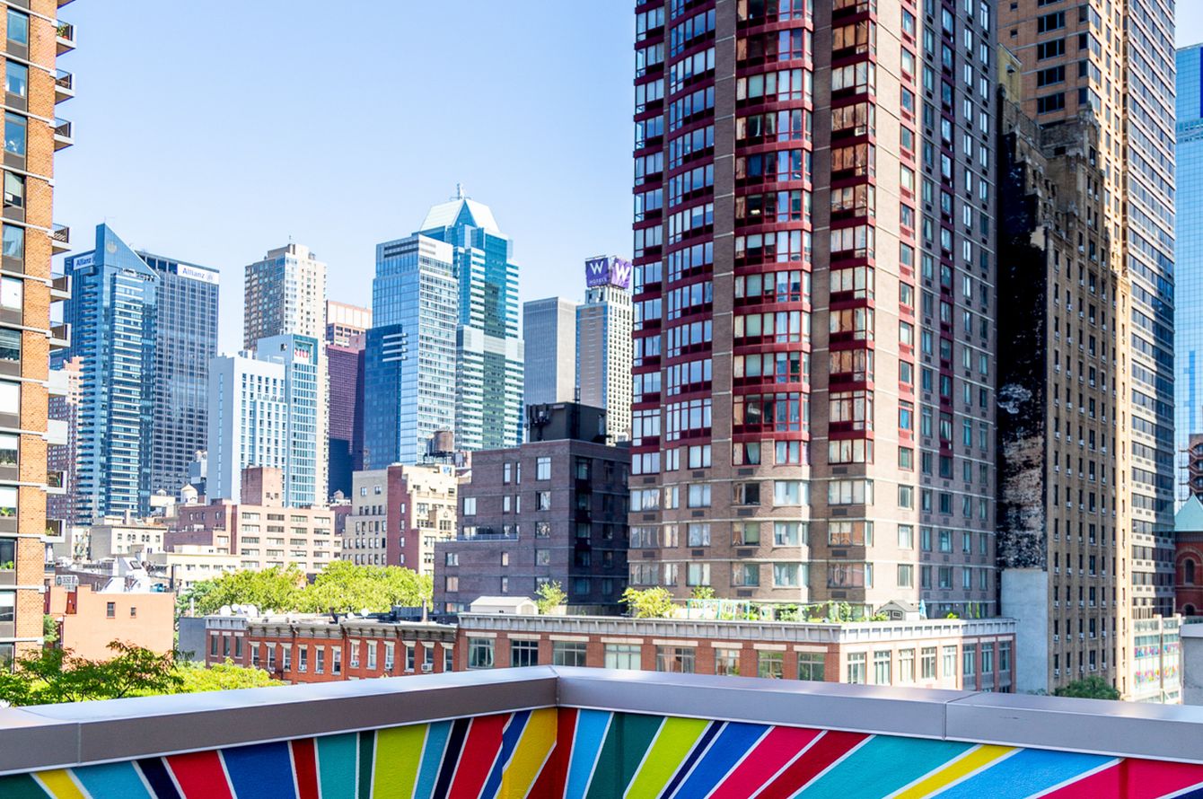 Im Herzen von Manhattan liegt das Pod Times Square im Stadtteil Hells Kitchen und ermöglicht Ihnen somit einen direkten Zugang in das quirlige Leben von New York City. Flanieren Sie durch die Strassen, die geflankt sind mit Restaurants, Bars, Cafés und Shops, und treffen Sie auf zahlreiche Aktivitäten und Sehenswürdigkeiten. Zu den bekanntesten gehören der farbenfrohe Times Square (ca. 650 m), der sich in der Nacht in ein erstaunliches Farbenspektakel verwandelt, das legendäre Empire State Building (ca. 1,5 km) sowie der grosse Central Park, den Sie nach ungefähr 2 km erreichen. Aber noch weitere warten auf Ihren Besuch, wie die hohe Struktur und architektonisch spannende Vessel (ca. 1 km) oder die imposante im neugotischen Stil erbaute Kathedrale «St. Patrick's» (ca. 2 km). In der Umgebung befinden sich einige Bushaltestellen und U-Bahnstationen. Bis zum John F. Kennedy Flughafen sind es mit den öffentlichen Verkehrsmitteln bis zu 1 Stunde und 15 Minuten, bis zum Flughafen Newark sind es zwischen 45 Minuten und 1,5 Stunden, alles je nach Verbindung.