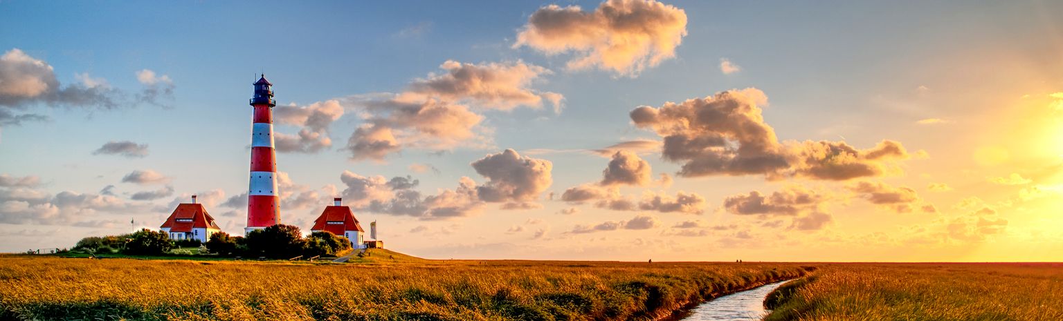«Moin Lieblingsland» – mit diesem Motto werden Sie im Norden Deutschlands empfangen. Die Region Nordfriesland im Bundesland Schleswig-Holstein erwartet Sie auf Ihrer Reise an die Nordsee. Nachdem Sie den Nord-Ostsee-Kanal überquert haben, sind Sie schon mitten im Ferienparadies, das von Wiesen, Feldern, Deichen und dem weiten Wattenmeer geprägt ist. Auf den Nordfriesischen Inseln erwarten Sie kilometerlange Strände und idyllische Friesendörfer.