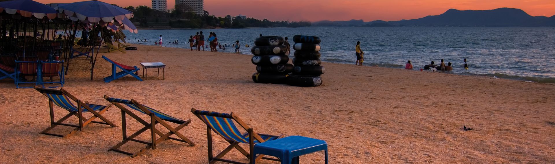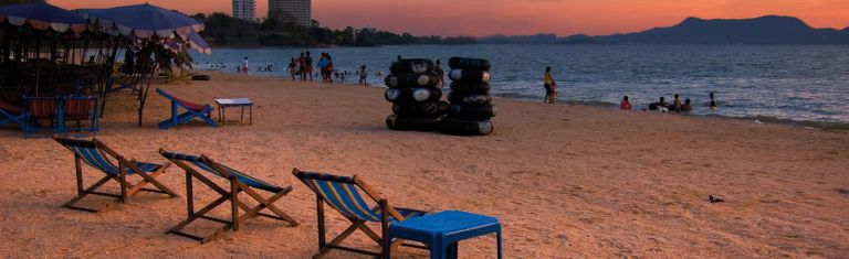 Der Jomtien-Strand liegt rund 2 km südlich von Pattaya entfernt und bietet 6 km herrliches Strandfeeling, mit viel Ruhe und Entspannung, aber auch Wassersport. Beliebter Zweitwohnsitz für Einheimische.