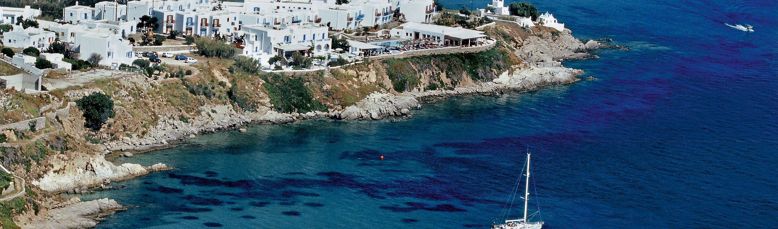 Bekannter Badeferienort mit Wassersportmöglichkeiten, nur ca. 4 km von Mykonos Stadt entfernt. Hier finden Sie auch unzählige Tavernen und Bars. Der Sandstrand ist flach abfallend, und in der westlich benachbarten Bucht liegt der ebenfalls sehr schöne Strand von Psarou.