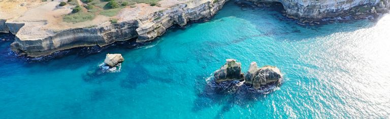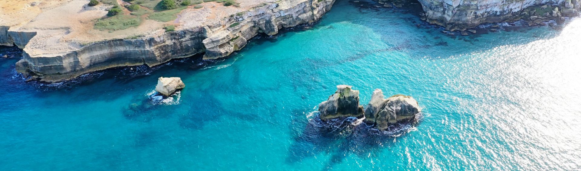 Die Provinz Lecce liegt im Süden Apuliens auf der Halbinsel Salento im untersten Teil des Stiefelsabsatzes. Das eher flache Gebiet hat Anhöhen von lediglich ca. 200 Metern. Nördlich von Otranto gibt es zwei natürliche Salzseen, die von üppiger Vegetation umgeben sind und Fischfarmen beherbergen. Am Kap von Otranto hört das Ionische Meer auf und die Adria beginnt. Entlang der Adriaküste ist die Landschaft stark verkarstet, wodurch beeindruckende Grotten wie Zinzilusa entstanden sind. Besuchen auch Sie den südlichsten Punkt Apuliens.