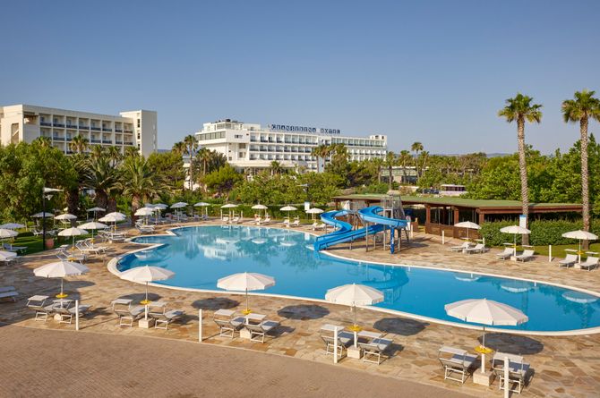 - BadeferienDirekt am StrandFlach abfallender StrandHoteleigener StrandPlanschbeckenPoolSandstrandWasserrutsche