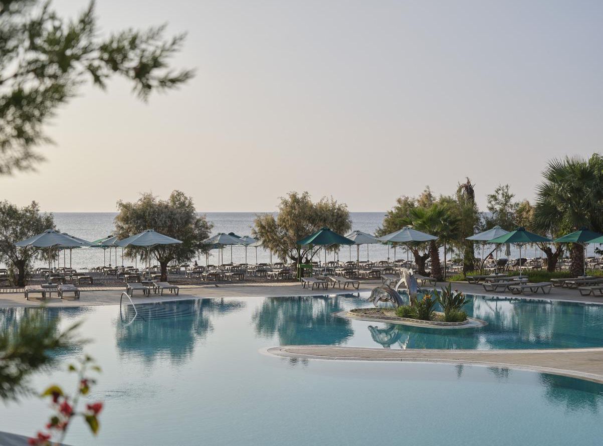 Das Resort beeindruckt mit seiner eleganten, modernen Architektur, die sich harmonisch in die mediterrane Küstenlandschaft von Rhodos einfügt und bietet einen einladenden Empfangsbereich mit Réception und WLAN (gratis). Internationales und griechisches Buffet-Hauptrestaurant mit Show Cooking, Grill- und Pizza-Station, A-la-carte-Restaurant mit griechischer Küche, 2 Bars, Boutique. Im gepflegten Aussenbereich befindet sich 1 Pool mit Sonnenterrasse. Die Nutzung von Liegestühlen, Sonnenschirmen und Badetüchern am Pool und am Strand ist gratis. Parkplatz gratis (nach Verfügbarkeit). E-Ladestation gegen Gebühr (nach Verfügbarkeit).