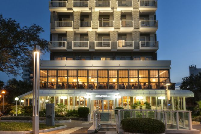 An einzigartiger Lage im bekannten Badeferienort Riccione ist das Viersternehotel nur durch die Strandpromenade vom kilometerlangen, breiten und flach abfallenden Sandstrand mit hoteleigenem Strandabschnitt getrennt. Die beliebte Einkaufsstrasse Viale Ceccarini mit verschiedenen Restaurants, Bars und Geschäften erreichen Sie nach knapp 300 m. Der Jachthafen ist etwa 800 m entfernt. Bis zum Bahnhof sind es ca. 700 m. Eine Bushaltestelle befindet sich vor dem Hotel.