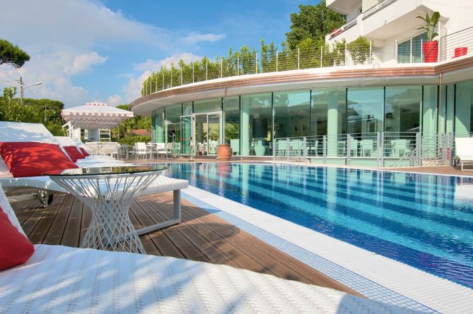 Das mit Liebe zum Detail eingerichtete Mondial Resort & Spa verfügt über einen stilvollen Empfangsbereich mit Réception, Internetecke (gegen Gebühr), WLAN (gratis) und Lobbybar. A-la-carte-Restaurant mit traditioneller italienischer Küche und Pool-/Snackbar. Parkplatz und Garage (beides gegen Gebühr). In der gepflegten Gartenanlage befindet sich ein Pool (Mai bis September) mit integriertem Whirlpool und Sonnenterrasse. Die Nutzung von Liegestühlen und Sonnenschirmen am Pool ist gratis, am Strand gegen Gebühr.