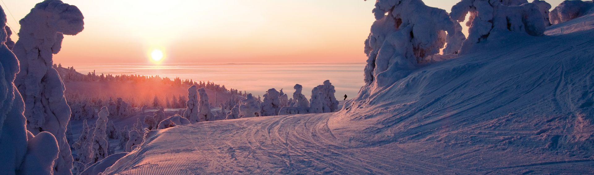 Saariselkä im Winter: Mit weniger als 2 Einwohnern pro Quadratmeter zählt Finnisch-Lappland zu den am dünnsten besiedelten Gebieten – und auch wenn im Winter fast 11'000 Betten zur Verfügung stehen, haben Sie hier viel Platz, vor allem auf den Langlaufloipen: 230 km ziehen sich durch die wunderbare, tief verschneite Landschaft, 34 km davon können beleuchtet werden. Die 11 Skipisten sind etwas kürzer als jene von Levi (Nordfinnland) und auf zwei Berge verteilt; auch hier können 5 Pisten beleuchtet werden. Insgesamt stehen Ihnen 15 Pistenkilometer zur Verfügung, die sich besonders für eher gemütliche Skifahrer eignen. Eine Halfpipe erlaubt Snowboardern rasante Abfahrten und atemberaubende Sprünge.