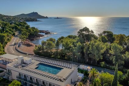 Das Hotel im provenzalischen Stil bietet einen herrlichen Blick über das Meer und die wunderschöne Landschaft bei Saint-Raphaël. Ideal für entspannte Ferientage.