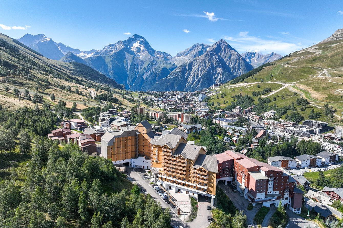 Direkt an der Skipiste und an fantastischer Lage mit atemberaubendem Ausblick auf die umliegenden Alpengipfel. Der Einstig ins riesige Wander- und Skigebiet beginnt direkt vor dem Hotel. Das Zentrum von Les Deux Alpes mit zahlreichen Restaurants, Bars sowie Geschäften und der Bergbahnstation ist ca. 1,5 km entfernt. Es verkehrt ein Gratis-Shuttlebus in Les Deux Alpes.