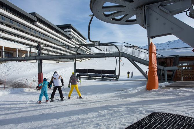 An ruhiger und herrlicher Lage auf 1850 m ü. M. direkt an der Skipiste gelegen und mit fantastischem Ausblick auf die umliegenden Berge. Das riesige Skigebiet Les 3 Vallées bietet über 600 Pistenkilometer und der Einstig beginnt gleich vor dem Hotel. Das Zentrum von Les Menuires mit verschiedenen Restaurants, Bars, Geschäften und Bergbahnen erreichen Sie nach 100 m bequem mit dem Lift.