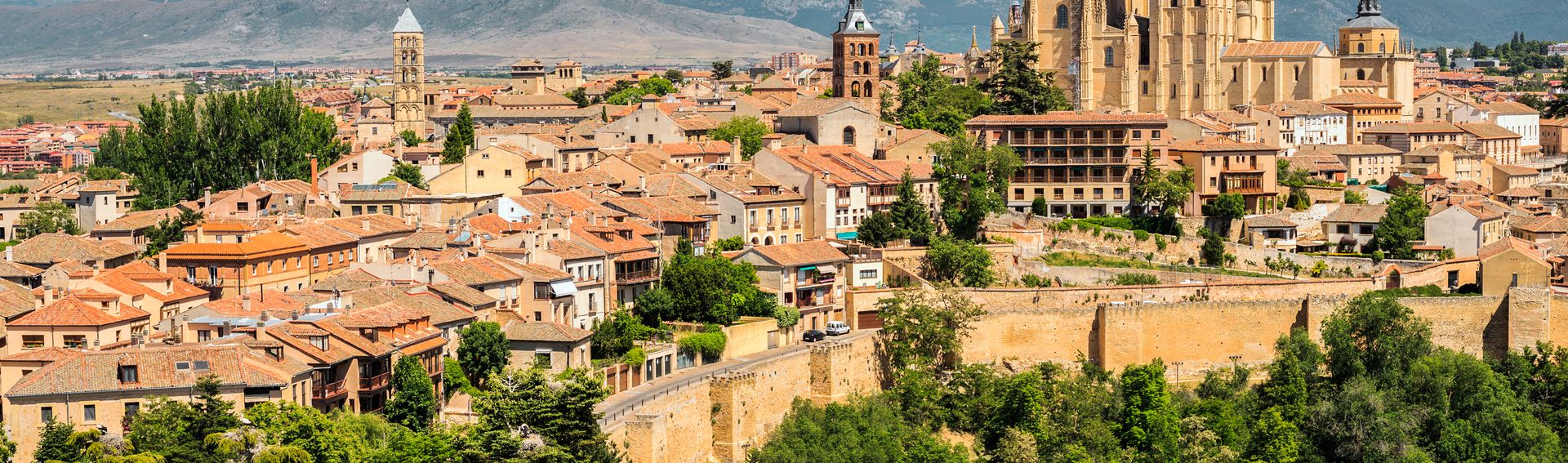 Segovia ist die Hauptstadt der gleichnamigen Provinz und liegt ca. 95 km nordwestlich der Landeshauptstadt Madrid. Zu den herausragenden Sehenswürdigkeiten zählt die imposante Burganlage Alcázar mit ihren vielen Spitztürmen, die herrschaftlich über dem Zusammenfluss der beiden Flüsse Eresma und Clamores thront. Hoch oben geht der Blick weit über das spanische Umland und die Dächer von Segovia hinweg. Mit dem Alcázar, der Kathedrale, dem römischen, sehr gut erhaltenen Aquädukt und den Kirchen gehört der historische Stadtkern von Segovia zum UNESCO Weltkulturerbe. Entdecken Sie die Schätze zu Fuss oder aus der Luft, denn eine Fahrt mit dem Heissluftballon ist ein ganz besonderes Erlebnis. Eine geführte Tour ist ebenso lehrreich und bringt Sie an die bedeutenden Plätze und Sehenswürdigkeiten von Segovia. Achten Sie auf bequeme Schuhe, denn die Wege führen Sie immer wieder hinauf und hinab. Nach einem Rundgang durch Segovias Zentrum ist es an der Zeit, eine Pause einzulegen und die Gastronomie der Stadt kennenzulernen. Dafür laden Sie die zahlreichen Restaurants und Cafés ein, sodass Sie sich nur noch entscheiden müssen, worauf Sie Appetit haben. Probieren Sie zum Beispiel ein Fleisch- oder Fischgericht und stärken Sie sich für die kommenden Unternehmungen! Mit einem Streifzug durch die Souvenirgeschäfte schliessen Sie Ihren Ausflug perfekt ab und finden bestimmt ein hübsches Andenken an Ihre Ferien in Segovia.