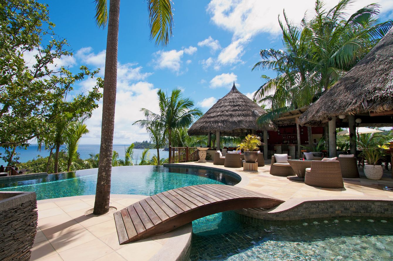 Die Suiten und Villen des Valmer Resorts liegen an erhöhter Lage an der Südküste von Mahé, mit traumhafter Sicht auf die Baie Lazare. Zum Flughafen sind es etwa 18 km.
