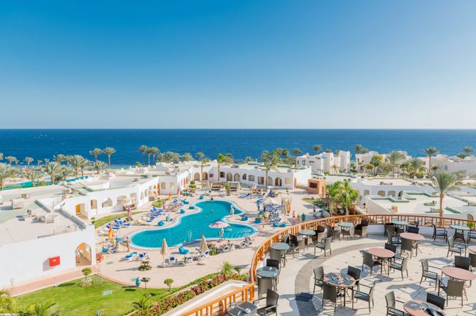 Terrassenförmig angelegt und direkt am privaten Sandstrand gelegen. Der Einstieg ins Meer erfolgt zum Schutze der Korallenbänke über einen Badesteg. Die nächsten Einkaufs- und Ausgehmöglichkeiten befinden sich im rund 2 km entfernten Il Mercato. Zur berühmten Naama-Bucht mit zahlreichen Geschäften, Restaurants und Cafés sind es ca. 10 km. Der Flughafen von Sharm el-Sheikh ist etwa 20 km entfernt.