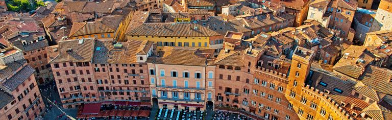 Siena, die schöne Gotische! Umgeben von einer Stadtmauer thront Siena auf drei Hügeln. Diese Stadt beeindruckt mit ihren von Palästen gesäumten Strassen, dem Dom aus schwarzem und weissem Marmor und der mittelalterlichen Piazza del Campo, von der man sagt, sie gehört zu den schönsten Plätzen der Welt. Wer Siena besucht, entdeckt neben spannenden Traditionen auch ein historisches Stadtbild.