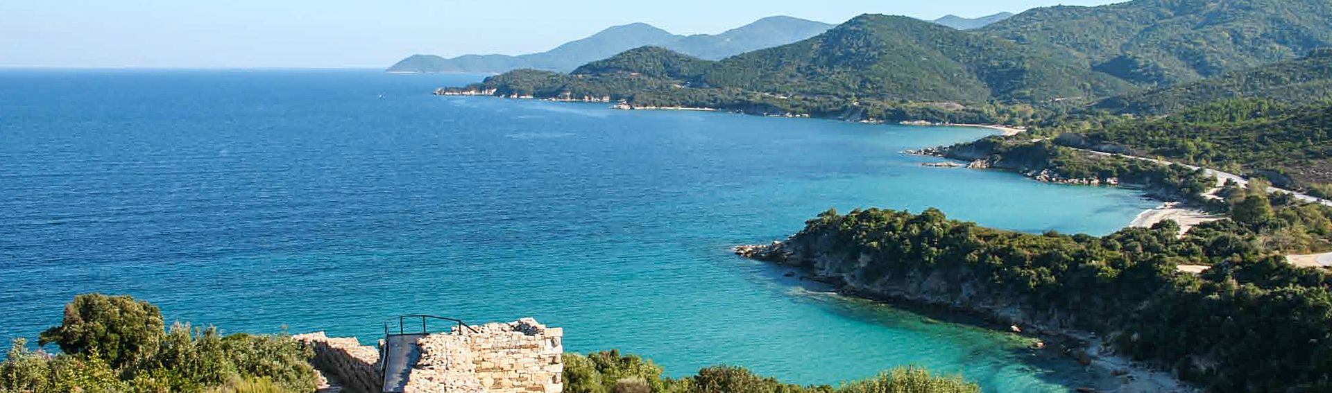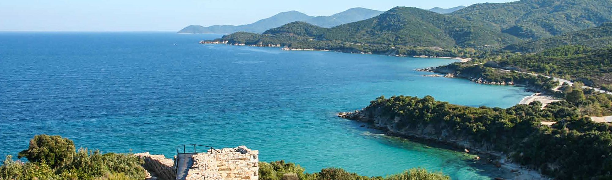 Sithonia bietet lange Sandstrände und türkisblaues Wasser, das den Vergleich mit der Karibik nicht zu scheuen braucht. Eine Insel ideal für Ausflüge per Mietwagen, mit dem Rad oder zu Fuss.