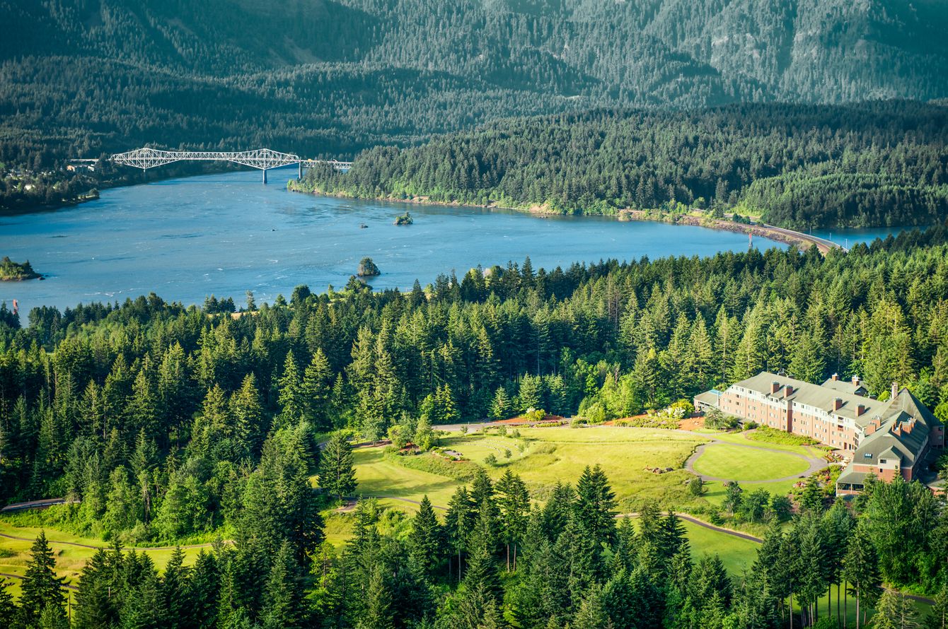 Die Lodge liegt idyllisch in der Columbia River Gorge National Scenic Area unweit von zahlreichen Wasserfällen, darunter die berühmten Multnomah Falls.