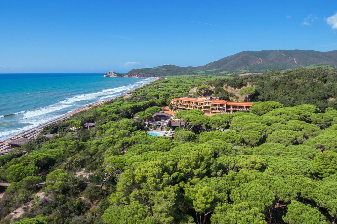 Direkt am flach abfallenden Sandstrand mit hoteleigenem Strandabschnitt und umgeben von einem weitläufigen Pinienwald. Etwa 6 km nördlich von Castiglione della Pescaia, wo Sie Restaurants, Bars und Einkaufsmöglichkeiten finden. Nach Punta Ala sind es rund 18 km und nach Follonica ca. 20 km.