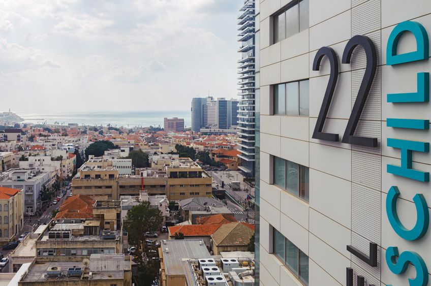 Das Hotel Rothschild 22 ist in einem Gebäude mit einer funkelnden Glasfassade untergebracht. Die Innenräume wurden vom israelischen Designer Ari Shaltiel im zeitgemässen Stil gestaltet. Zur modernen Einrichtung gehören ein lichtdurchfluteter Empfangsbereich mit Réception und WLAN (gratis). Das charakteristische Frühstücks-Restaurant erinnert an ein Pariser Café.