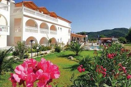 In Alykanas. Ca. 800 m Sandstrand. Die Einkaufsmöglichkeiten, Restaurants und Bars sind knapp 200 m entfernt. Die nächstgelegenen Ortschaften des Hotels sind Alikes in etwa 2 km Entfernung und Katastari in rund 3,5 km Entfernung. Zum Flughafen von Zakynthos sind es ca. 16 km.