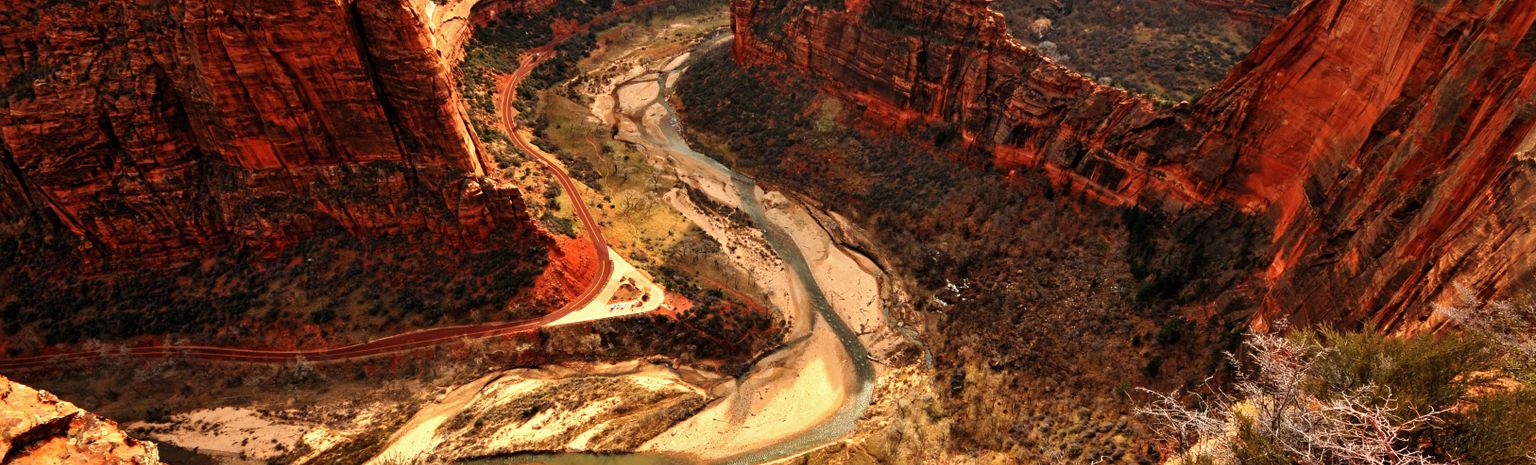 Durch die besondere geografische Lage existiert in diesem Nationalpark im Süden Utahs eine Vielzahl an unterschiedlichen Lebensräumen mit vielen Pflanzen- und Tierarten. Ein tolles Fotomotiv ist die 700 Meter tiefe und enge Schlucht des Virgin River.