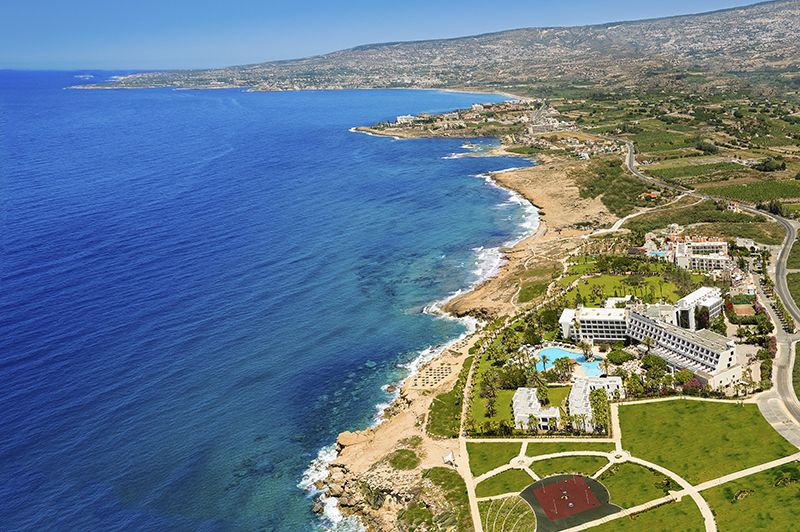 Inmitten eines schönen Gartens ist das Hotel an der Westküste Zyperns, welche für traumhafte Sonnenuntergänge bekannt ist, erreichen Sie den Sandstrand nach rund 180 m. Das Städtchen Chloraka befindet sich nur ca. 2 km vom Azia Resort & Spa entfernt. Das belebte Zentrum von Paphos erreichen Sie in ca. 6 km. Bis zum Flughafen Paphos sind es ca. 20 km.