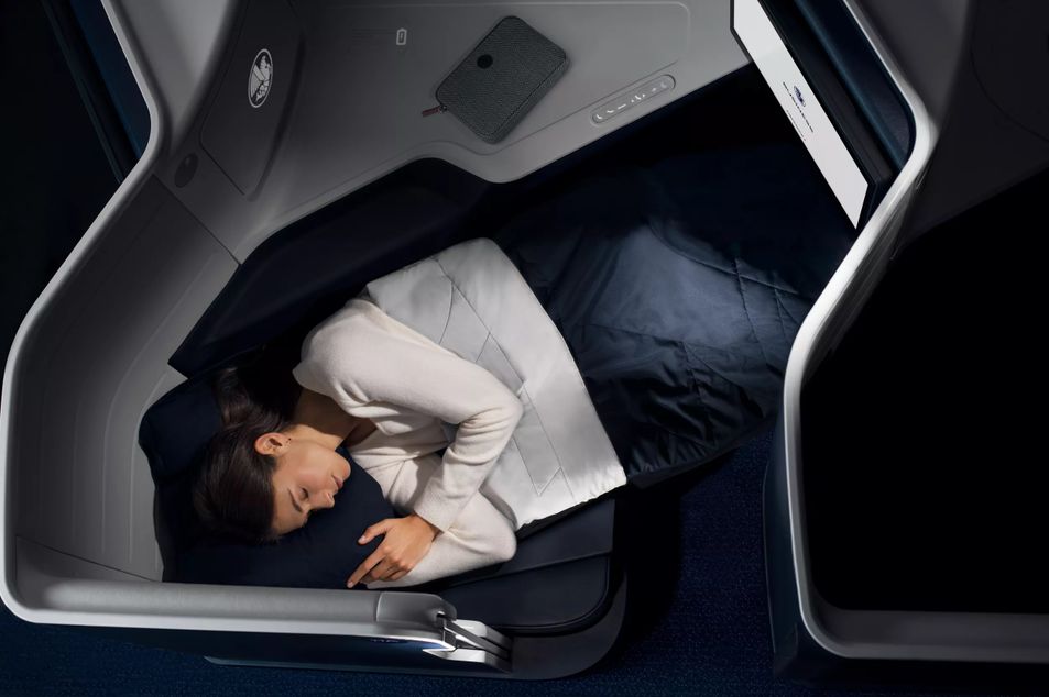 Sur vos vols long-courriers, profitez de notre cabine Premium pour dormir, lire ou travailler en toute liberté. Espace, calme et sérénité… Voyagez dans une bulle de confort.