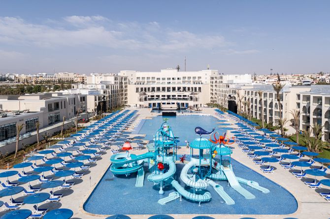 Hall de réception accueillant avec wifi gratuit. 4 restaurants-buffets (cuisine internationale, méditerranéenne, marocaine, fruits de mer), bar dans le hall et bar de plage. Espace extérieur avec deux grandes piscines, terrasse et bar de piscine. Chaises longues et parasols gratuits à la piscine et la plage. Draps de bain contre dépôt.