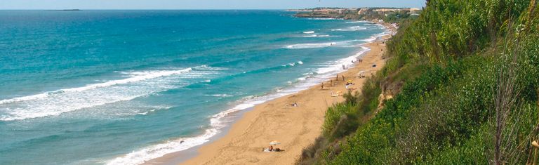 Dans une grande réserve naturelle environ à 30 km au sud de Corfou-ville est située la plage de sable tombant lentement dans l’eau d’Agios Georgios. Le village de vacances se trouve environ à 300 m de la plage, le village de pêcheurs du même nom avec des nombreuses tavernes, bars et magasins est environ à 500 m. Bus réguliers pour Kerkira.