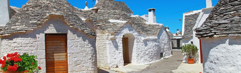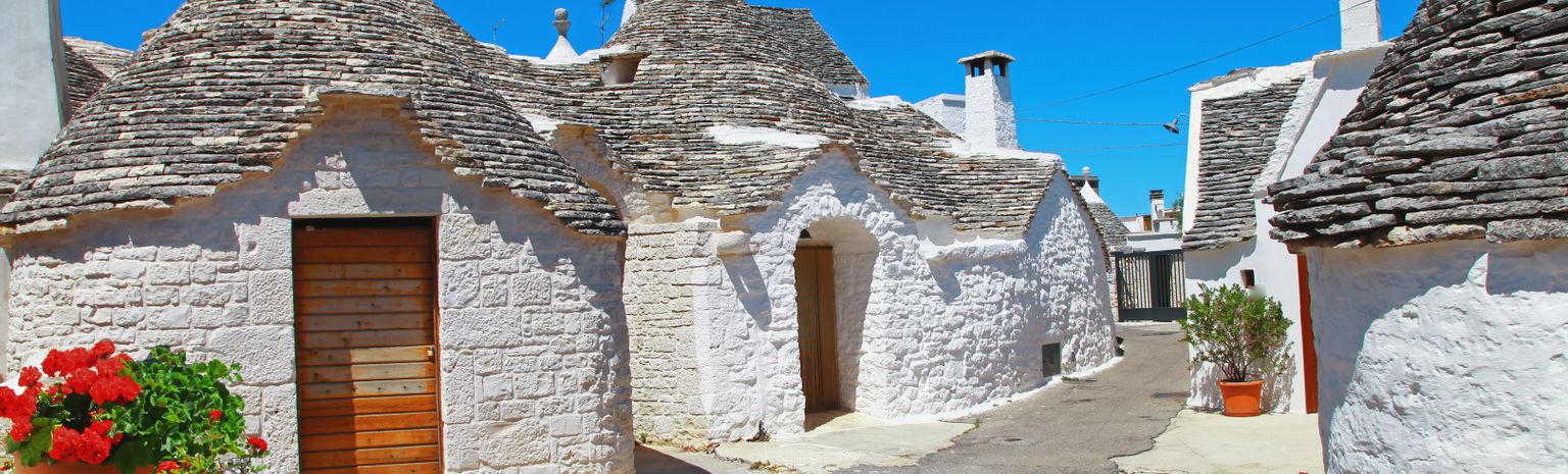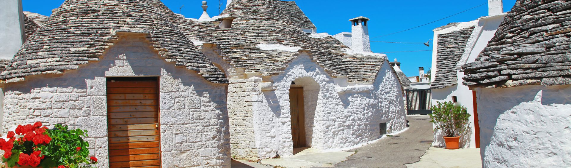 Alberobello, petite ville de 10 000 habitants, est située au sud-est de la province de Bari dans les Pouilles au cœur d'une forêt de chênes. Destination de voyage très appréciée, la ville a été classée en 1996 au patrimoine culturel mondial de l'humanité de l'UNESCO. Alberobello, qui signifie «bel arbre», doit sa notoriété à ses Trulli, constructions côniques bâties d'après une technique de construction préhistorique de cabane de bergers de la région. Les Trulli sont des maisons principalement de forme ronde, peintes en blanc avec des toits côniques caractéristiques souvent décorés de symboles religieux ou de signes astrologiques. D'après la tradition orale, ils ont été érigés pour échapper à l'impôt que le souverain prélevait sur les constructions en dur de ses sujets. Ceux-ci les construisirent en galets de pierre sans mortier, ce qui leur permettait de les démonter rapidement si le percepteur s'approchait de la ville. Les plus anciens Trulli d'Alberobello datent du IVe siècle. Encore habités aujourd'hui, ils ont été consolidés et joliment aménagés. Si un Trullo s'avérait trop petit, un deuxième était construit ce qui donne des groupes de Trulli pouvant aller jusqu'à 4. Dans la vieille ville, on rencontre ces habitations dans les étroites ruelles serpentant le long de la colline et on peut les visiter. Elles abritent souvent un magasin de souvenirs ou en petit restaurant. Dans le quartier «Monti» où se trouvent environ 1000 Trulli, on peut visiter une habitation siamoise dont le toit commun est constitué de deux cônes réunis. Son histoire est étroitement liée au combat entre l'amour et la haine. Dans le quartier «Aia piccola» on trouve des ruelles étroites et tortueuses bien conservées. Le Trullo Sovrano, le seul construit sur deux étages, abrite aujourd'hui un musée. L'église Saint Antoine est une autre curiosité d'Alberobello, elle aussi arborant comme on pouvait s'y attendre la forme d'un Trullo. En été quelques festivités ont lieu à Alberobello en l'honneur de ses saints.