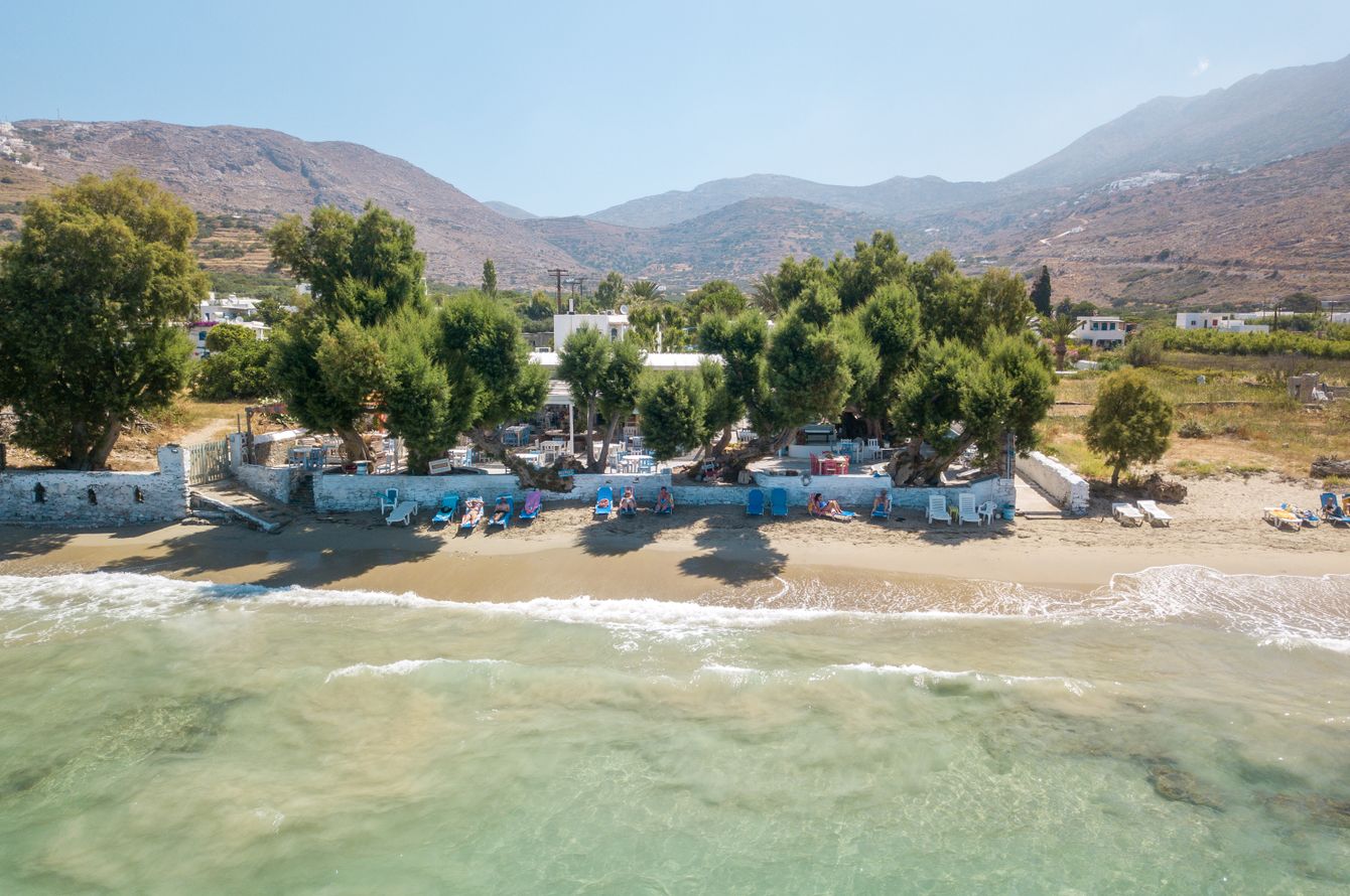 Non loin de la plage d’Aegiali. À 600 m du port, des commerces, restaurants et tavernes du centre. Les environs vous invitent en outre à faire de la randonnée sur de nombreux sentiers. Ferries pour les îles des Cyclades partant des ports d’Aegiali (à 1 km) et Katapola (à 25 km).