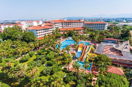 Ce complexe très apprécié a une superficie totale de 33 000 m² et se trouve au milieu d’un parc. L’hôtel compte 227 chambres Garden (chambres doubles), 11 chambres familiales Garden et 2 chambres pour personnes à mobilité réduite. Elles sont réparties sur quatre étages accessibles via deux ascenseurs panoramiques. L’établissement dispose d’un hall de réception, d’un bar dans le hall (Kehribar), salon, divers bars, d’une salle TV avec écran géant et d’un service médical (payant). Wifi dans les chambres, dans le parc, dans le hall, au bar ainsi qu’à la plage et à la piscine. Le restaurant principal (cuisine internationale) dispose d’un espace non-fumeur et d’une terrasse (zone non-fumeur). Le Bahçe Bar du restaurant à la carte est un snack-bar propossant des plats internationaux de midi à 16 h (payant). Le parc bien entretenu abrite une piscine, une autre avec quatre toboggans aquatiques (à l’heure, selon le temps), un bassin séparé pour les enfants, une pelouse et des terrasses avec une végétation tropicale luxuriante. Chaises longues, parasols, draps de plage (fournis dans la chambre) et surmatelas gratuits pour nos hôtes à la piscine et à la plage.