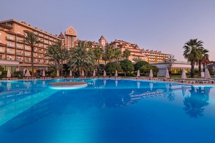 Composé d’un bâtiment principal et de plusieurs annexes, l’établissement a hall de réception avec wifi gratuit, fauteuils et bar. Restaurant-buffet principal turc et international, 5 restaurants à la carte proposant des spécialités italiennes, mexicaines, turques et orientales ainsi que fruits de mer. Snack-bar, 7 autres bars et café. Centre commercial avec supérette, boutique, salon de coiffure, boutique de souvenirs, bijouterie et autres commerces. Parc méditerranéen avec 3 piscines (dont une de relaxation), terrasses, bar, parc aquatique doté de 8 toboggans. Chaises longues, parasols et draps de bain gratuits aux piscines et à la plage. Cabanas payants.