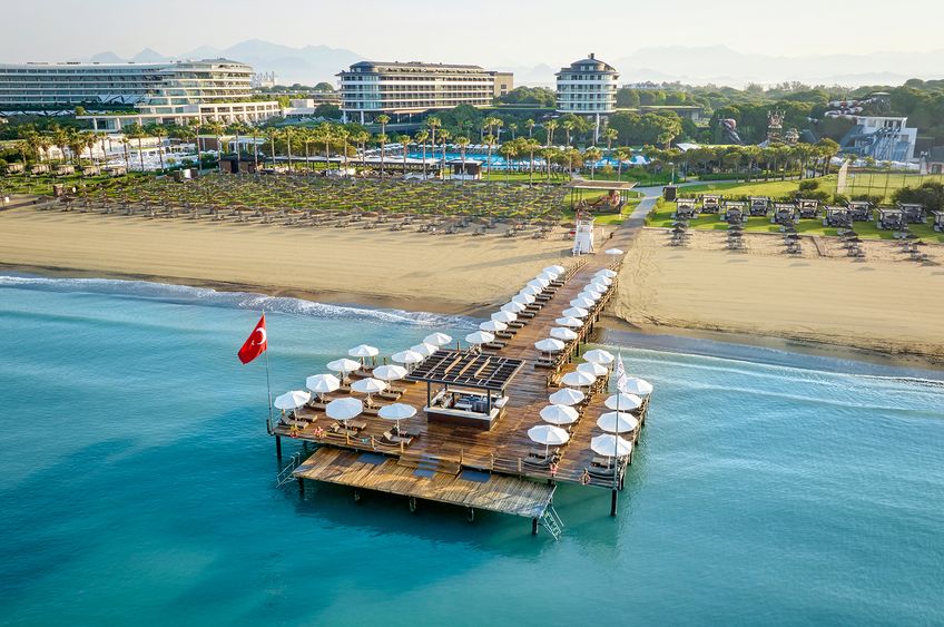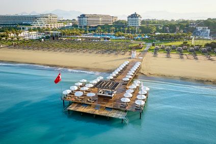 Attrayant, niché entre la côte et les prestigieux terrains de golf de Belek. Juste devant une plage de sable en pente douce de 300 m de long appartenant à l’hôtel, dotée du pavillon bleu. Deux pontons, dont un réservé aux adultes. À 2,5 km des commerces, restaurants et cafés du centre de Belek. Non loin de la ville antique de Perge, dont le site historique vaut le détour. À 42 m d’Antalya et à 35 km de son aéroport.