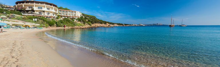 Bordant une baie protégée aux eaux cristallines et au sable fin, Baia Sardinia est l’une des stations les appréciées de Sardaigne. Point de départ idéal d’excursions en bateau le long de la Costa Smeralda.