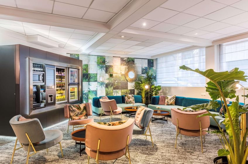 Hall de réception tendance avec wifi gratuit, bar, distributeur de boissons et d’en-cas. Parking payant.