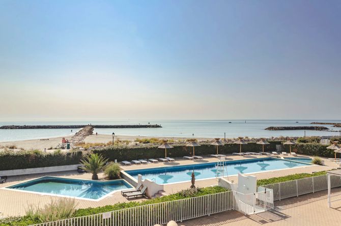 Séparé de la longue plage de sable en pente douce par une promenade. À moins de 500 m du centre avec ses nombreux restaurants, cafés, bâtiments historiques et petits commerces. La charmante ville des Saintes-Maries-de-la-Mer est un lieu de pèlerinage réputé au cœur du parc naturel régional de Camargue. Elle est le point de départ idéal pour des excursions dans la région. À 55 km de l'aéroport de Montpellier. À 110 km de l’aéroport de Marseille et à 280 km de l'aéroport de Nice.
