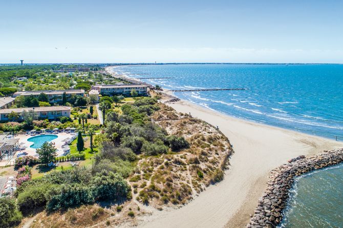 Face à une longue plage de sable en pente douce entre La Grande-Motte (à 2 km) et Le Grau-du-Roi (à 4 km). À proximité des restaurants, bars et commerces des deux localités. À 20 km de l'aéroport de Montpellier. À 125 km de l’aéroport de Marseille et à 300 km de l’aéroport de Nice.