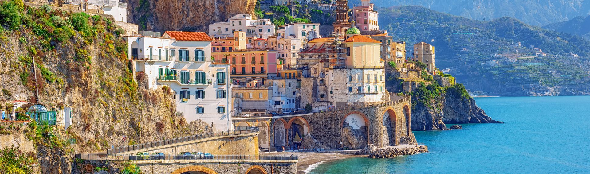 La Campanie est une région côtière située au sud-ouest de l'Italie, elle possède l'une des plus belles étendues littorales du pays, la côte amalfitaine. Berceau de la pizza, avec le majestueux Vésuve en toile de fond, la Campanie est riche en histoire et en culture, colorée, opulente, animée et son paysage est tout simplement magnifique.