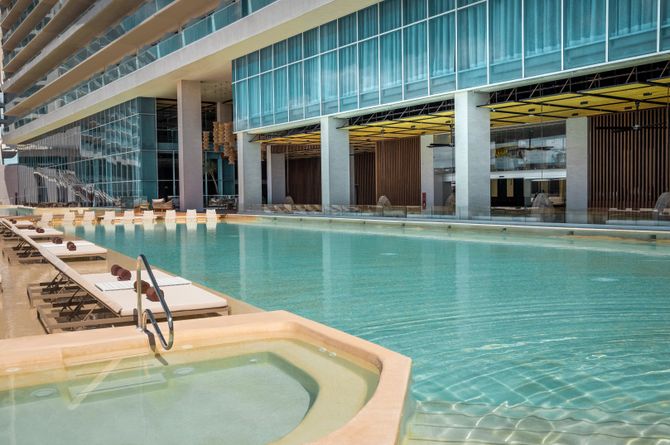 L'établissment inauguré au printemps 2024 a hall de réception et wifi gratuit. Plusieurs restaurants dont un restaurant-buffet principal proposant une cuisine locale et internationale, 5 restaurants à la carte servant des plats italiens, français, méditerranéens, mexicains et japonais, food truck. Café et plusieurs bars dont un avec vue magnifique sur le coucher de soleil. Espace extérieur avec 3 piscines dont une à débordement (sur le toit-terrasse et uniquement pour les clients du Vantage Club), l'une des plus longues de Cancún (90 m) et vue mer. Beach club à Playa Delfines avec piscine et restaurant (à environ 10 min en navette). Chaises longues et parasols gratuits aux piscines, payants à la plage.