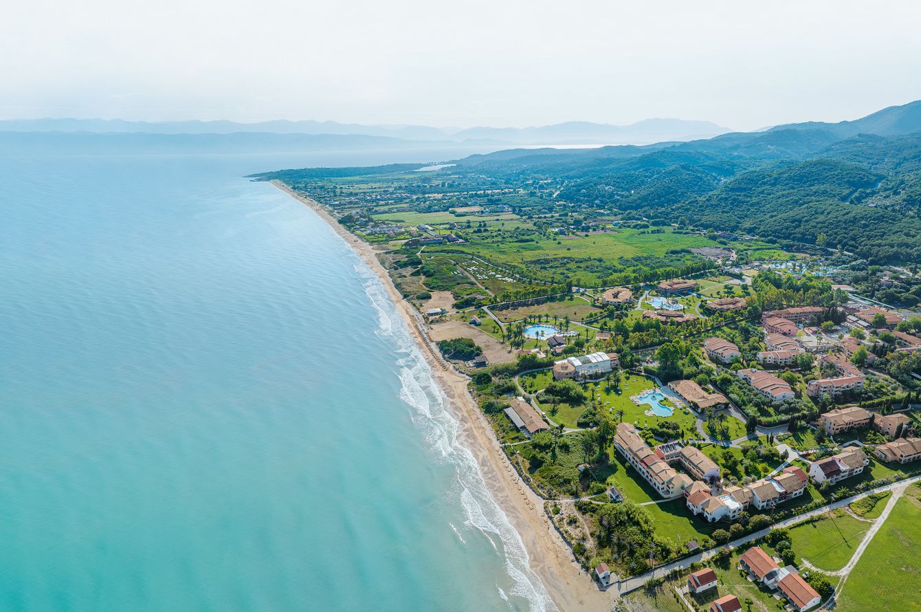 Ce charmant hôtel de luxe a été construit sur un terrain en pente douce d’environ 350 000 m², parsemé de palmiers, d’oliviers et de cyprès, dans le village d’Acharavi, sur la côte nord de Corfou. En face de la plage de 1 km de long, avec des dunes, tout comme l’arrêt de bus qui mène à la lagune d’Antinioti à 4 km. À 37 km de Corfou, la ville principale de l’île, et à 40 km de l’aéroport.