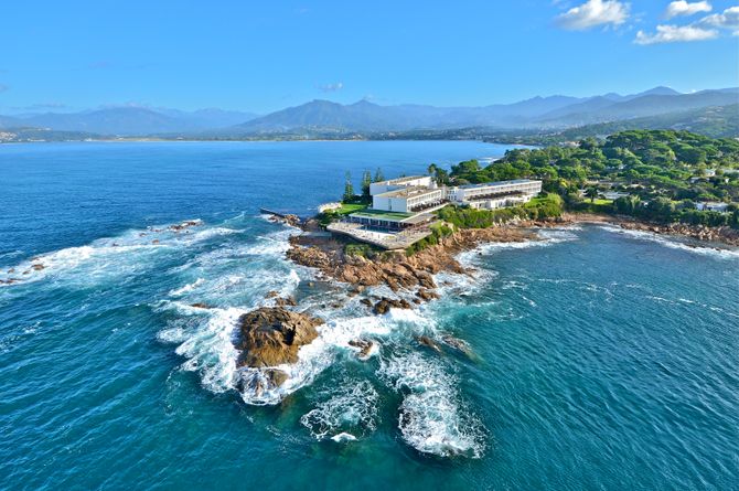Au bord d'une plage privée, en face é la baie d'Ajaccio et des îles Sanguinaires, sur la petite presqu'île de Porticcio, à 18 km d'Ajaccio. À 15 km de l'aéroport d'Ajaccio. À 135 km de l'aéroport de Bastia et à 155 km de l'aéroport de Calvi.